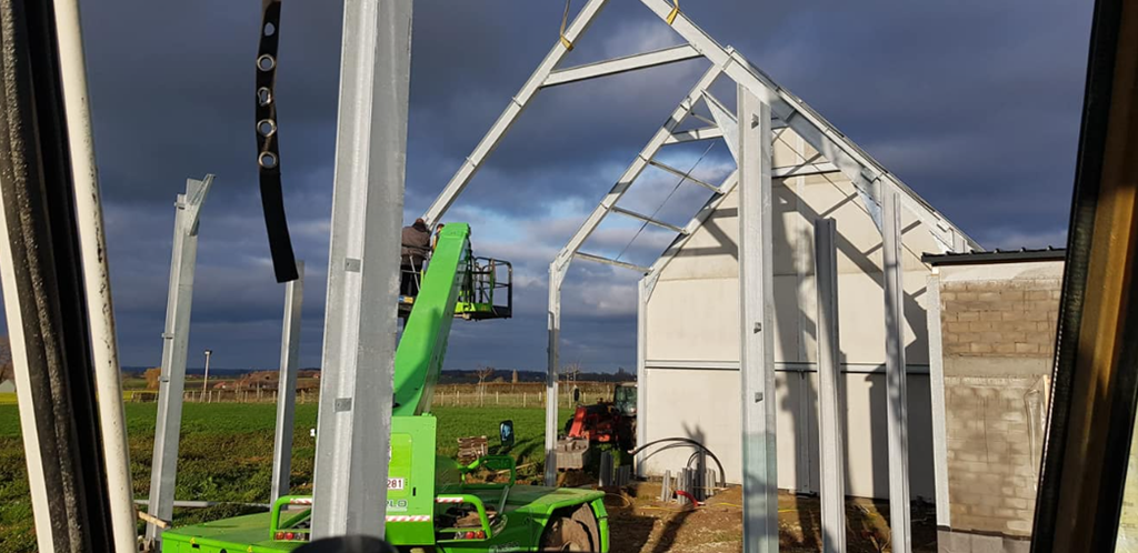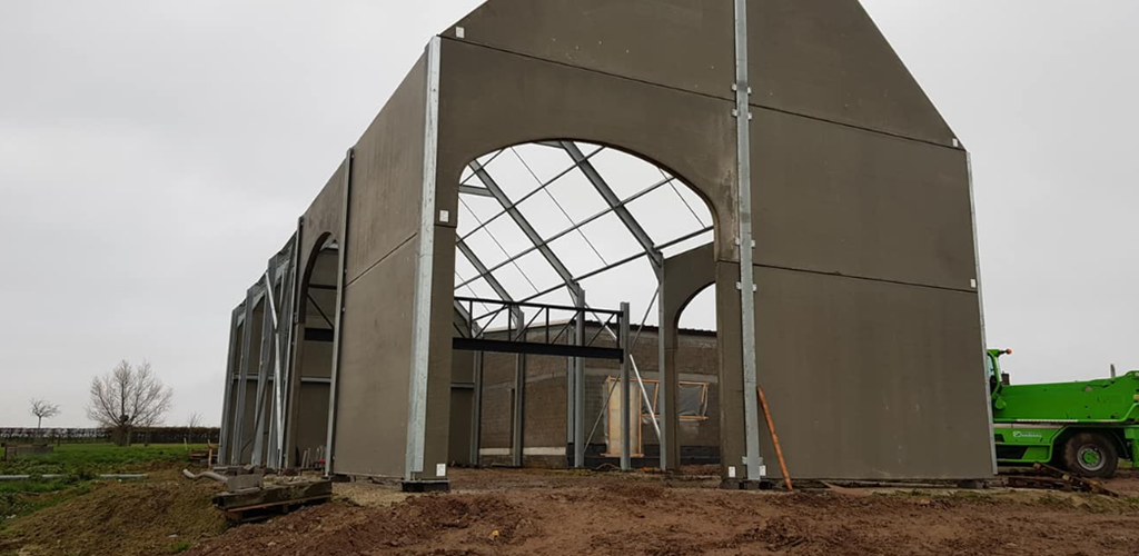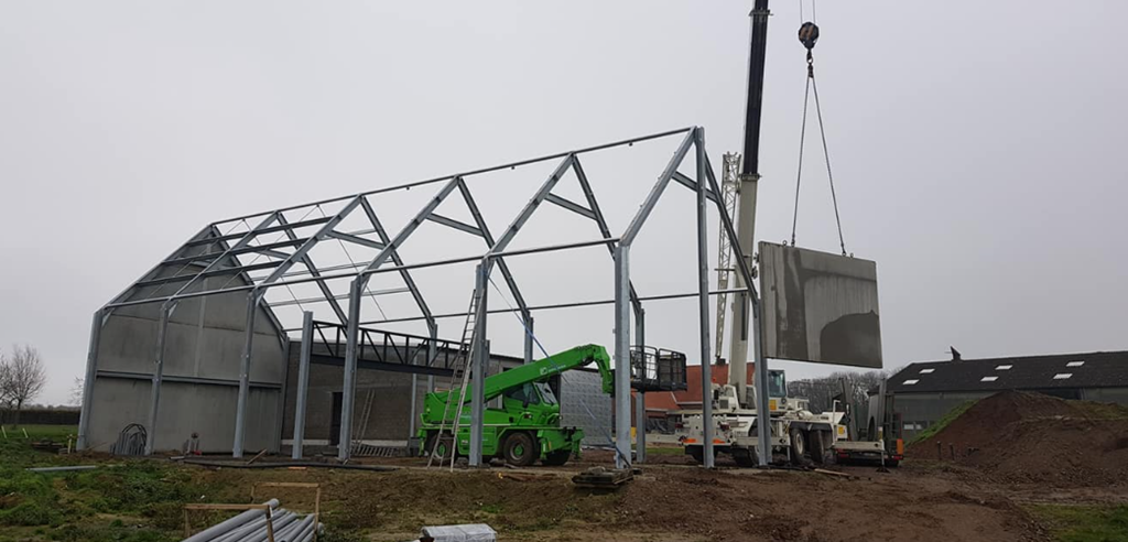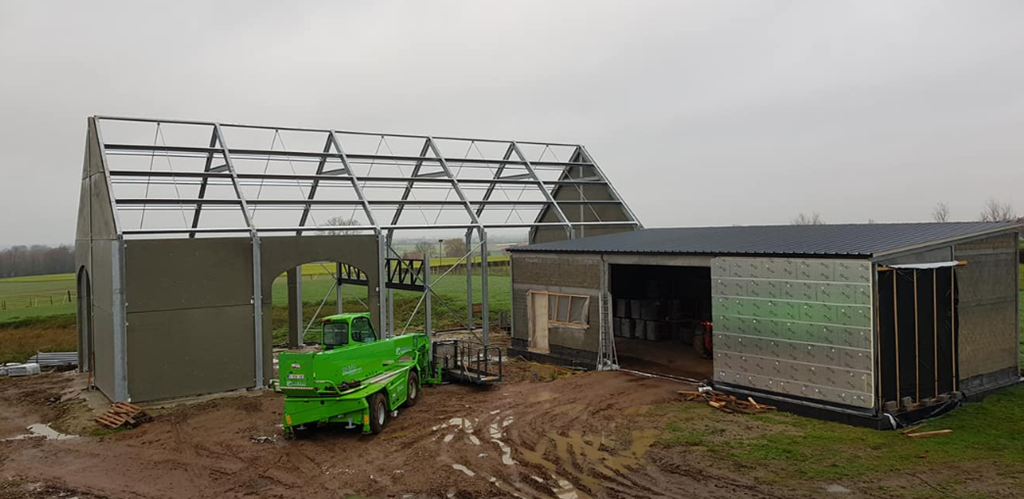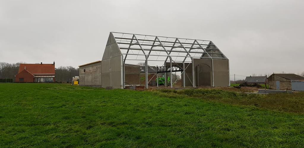 Er werd een ruime loods geplaatst die zal functioneren als feestzaal. Daarnaast werd een schuur gebouwd die ingericht is als garage en opslagruimte voor werkmateriaal. Zo ontstaat een praktische en overzichtelijke indeling die zowel voor evenementen als voor dagelijks gebruik uitstekend werkt.