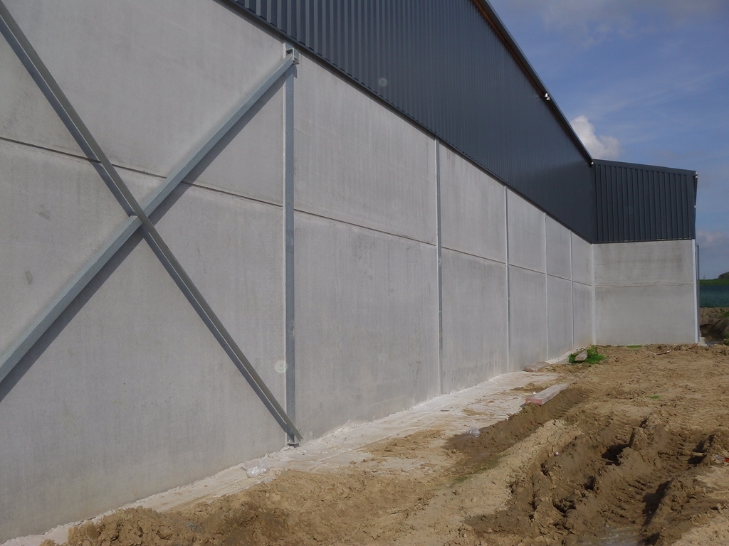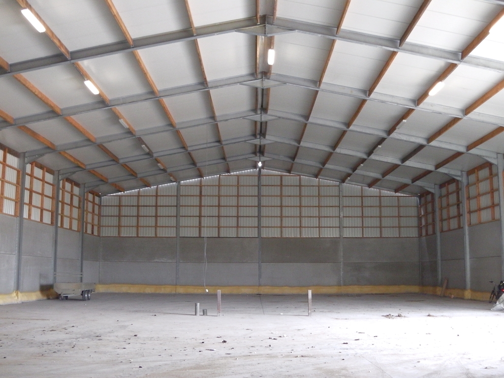 Deze loods is opgebouwd uit een stevige metalen constructie met daarin betonplaten geplaatst. De betonplaten vormen de onderzijde van de wanden en zorgen voor een robuuste basis. De stalen draagconstructie geeft de loods extra sterkte en stabiliteit, waardoor ze geschikt is voor intensief gebruik. Het dak bestaat uit sandwichpanelen.